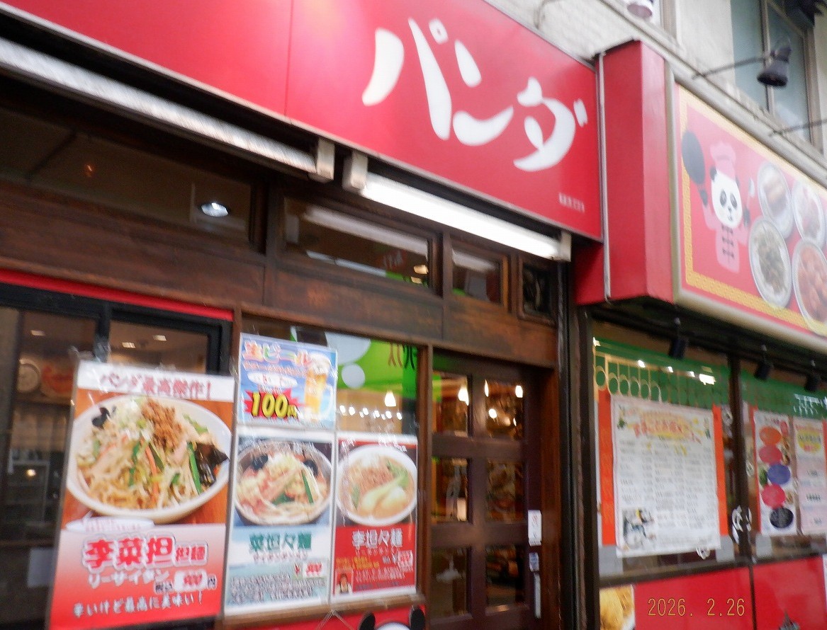 - JR 蒲田今となっては 店名 ”パンダ”が 悲しいけど、、、、、 空腹感と 店名と 店先のメニュー書きに 惹かれ入店 麻婆炒麺、、、、やや辛めで 発注 揚げ焼きの麺に 麻婆 案外いける
