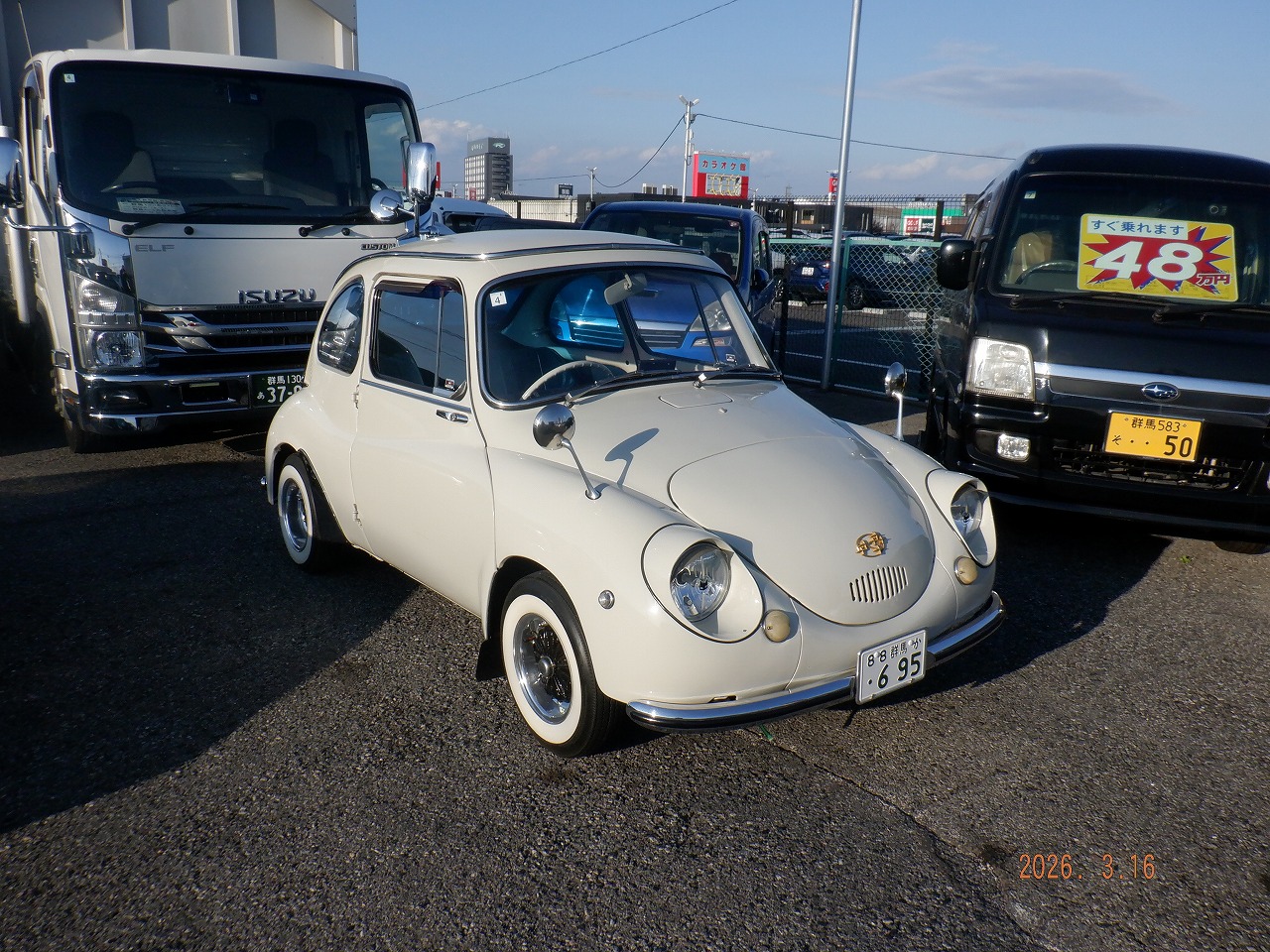 - 太田 スバルの聖地スバル本社工場 東側 本日の メインイベント 左ハンのスバル 沖縄仕様 R2のバン、、、、 レアすぎる 美しすぎる個体と スバル愛に 興奮が おさまらない 月曜夕