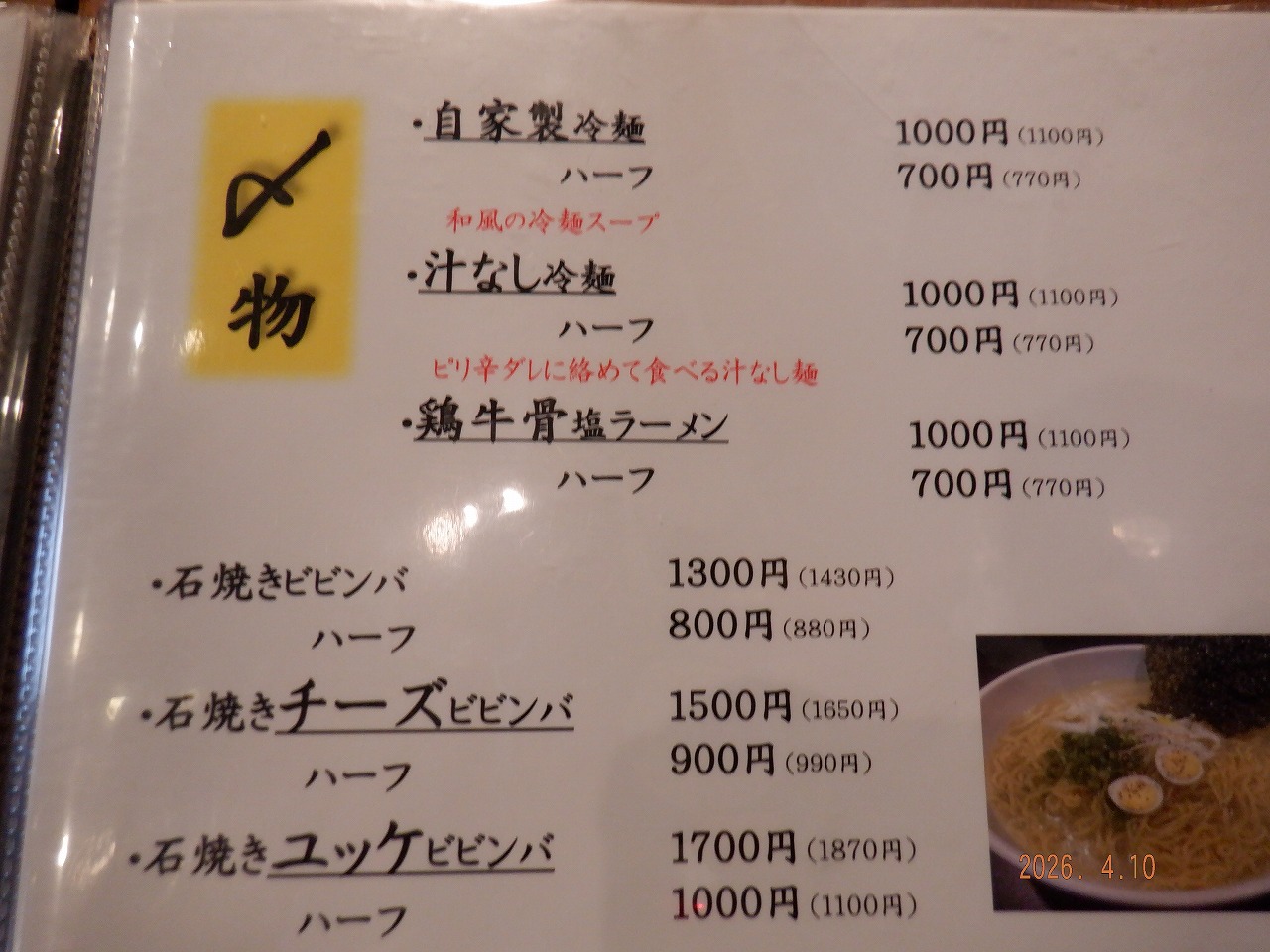 練馬 氷川台 投稿日 2026年4月10日 著者 アイズ カテゴリー 営業飯 割とランチメニューが充実してたけど ビビン麵+煮込み 単品発注 今日は週末金曜 13時~18時半までは みっちりと事務仕事 そして大人しく帰宅 この記事を書いた人 アイズ 記事一覧