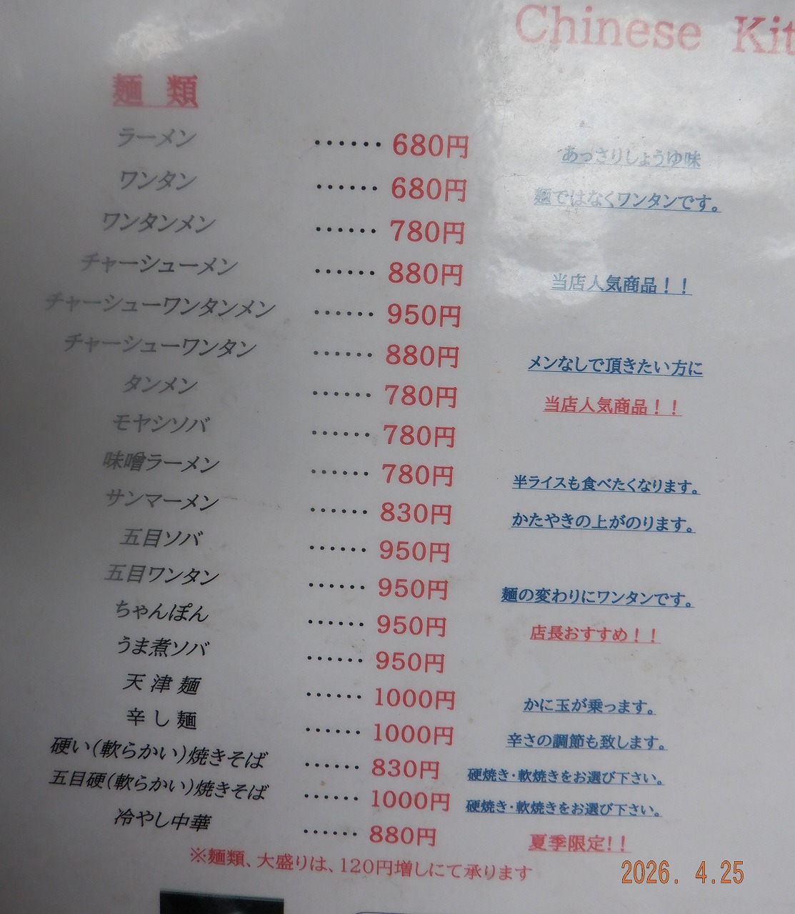 上麻生線 投稿日 2026年4月25日 著者 アイズ カテゴリー 営業飯 少し前から 気になってた 餃子の看板 割とお年を召した ママ一人で 運営 注文聞いてから 餃子を包む こだわり、??、、、 メニューの ちょっとしたコメントが 面白い 大振り餃子は 自分好み 全体的には ディープではあるけど 駐車場も2台あり また訪問したい この記事を書いた人 アイズ 記事一覧