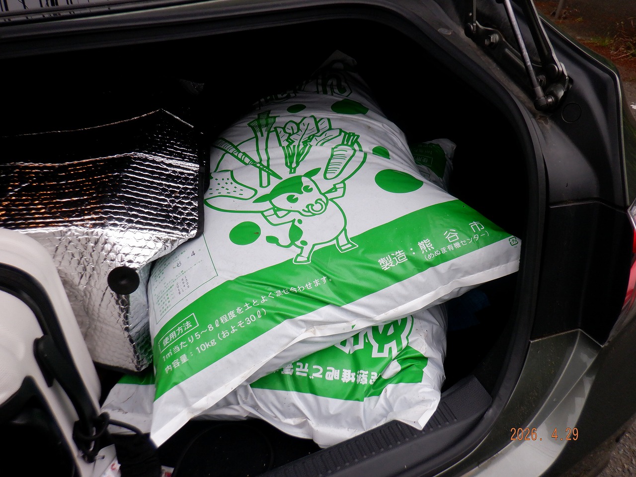 熊谷妻沼で仕入れた堆肥3袋 30㌔ と 太田メダカ師匠から仕入れた達磨メダカと共に 無事帰京